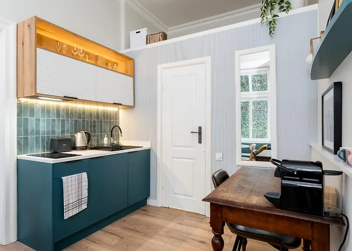 이 Blue Den Old Town Apartments 아파트는 크라쿠프의 Stare Miasto 지역에 위치해 있으며 요한 바오로 2세 크라쿠프 발리체 국제공항 공항에서 15km 떨어져 있습니다. 중앙 시장 광장에서 1km 거리에 위치한 이 수소는 1개의 침실, 1개의 욕실과 작은 부엌도 갖추고 있습니다.